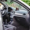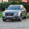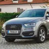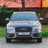 Audi Q3 com registo em 2013, apresentado em cinzento, é um SUV compacto que concilia uma imagem limpa e uma presença adequada tanto em ambiente urbano como em deslocações mais prolongadas.